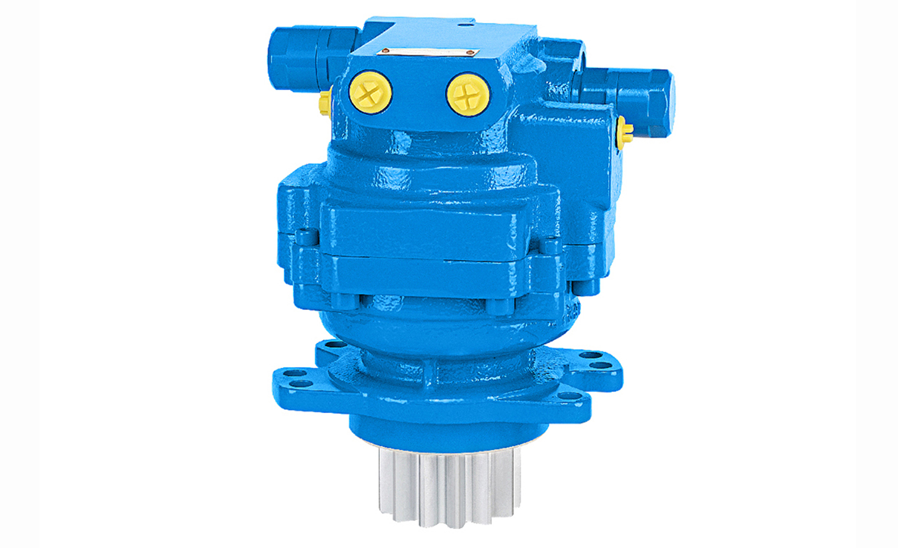 1、轴向斜盘式柱塞马达、补油阀,回转制动器及溢流阀集成式设计。